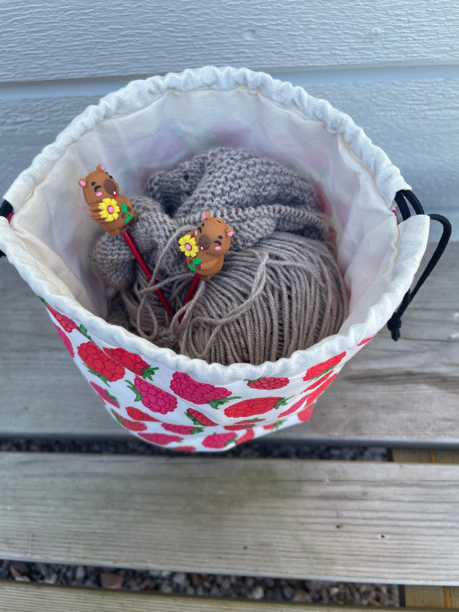 En praktisk och charmig projektpåse som hjälper dig att hålla ordning på dina kreativa projekt. Perfekt för stickning, virkning eller andra små handarbeten som du vill ha samlade på ett ställe.